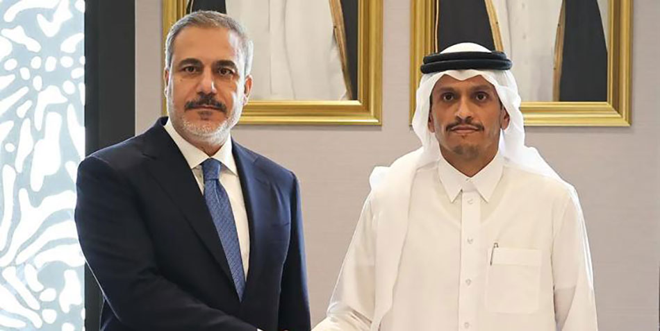 Dışişleri Bakanı Hakan Fidan, Katar Başbakanı ve Dışişleri Bakanı Şeyh Mohammed bin Abdulrahman Al Thani ile ortak basın düzenledi.
