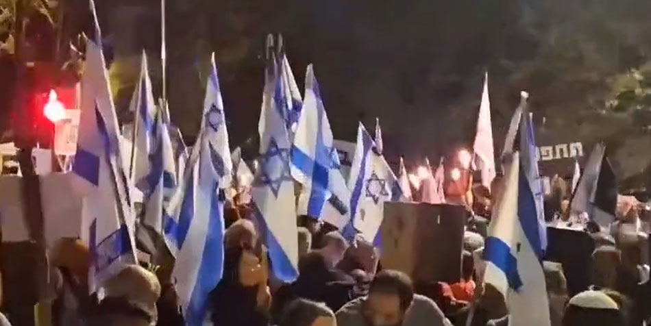 Batı Kudüs'teki Gazze Caddesi yakınlarında toplanan yaklaşık bin İsrailli, ellerinde Netanyahu hükümetini başarısız olmakla suçlayan döviz ve karikatürler taşıyarak, Netanyahu'nun istifa etmesi çağrısında bulundu.