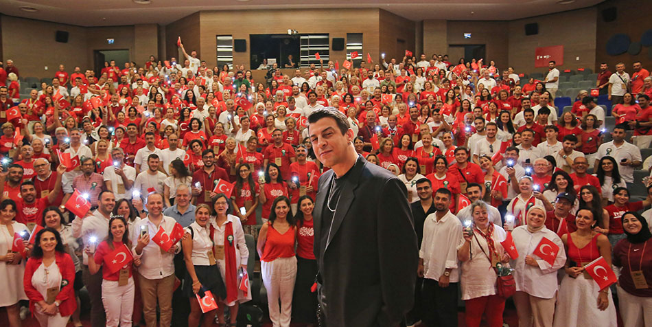 Etkinlik, Norm Ender’in sahnede "Parla" marşını gönüllülerle birlikte söylemesiyle devam etti. Katılımcılar, kırmızı ve beyaz kıyafetleriyle Türk bayraklarını sallayarak şarkıya eşlik etti. Salonun her köşesinden yükselen coşku dolu sesler, unutulmaz anlar yaşattı.