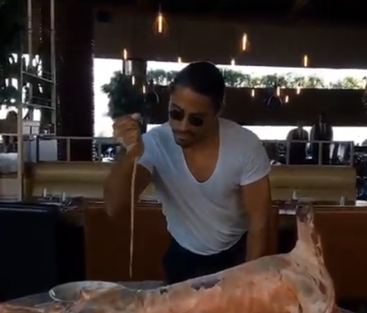 Türk kasap, şef ve restoran işletmecisi olan Nusret Gökçe, son paylaşımıyla görenlerin ağzını açık bıraktı. Etle yaptığı gösteriyi sosyal medyada paylaşan Nusret, sosyal medya kullanıcılarının büyük tepkisine maruz kaldı.