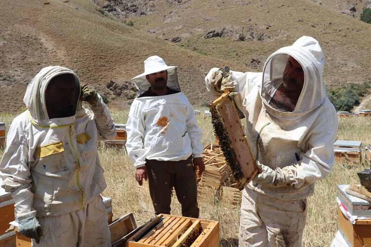 Van'ın İpekyolu ilçesindeki Erek Dağı'nın eteklerindeki Faruk suyu bölgesinde arıcılık yapanlar, verimden oldukça memnun olduklarını belirtti.