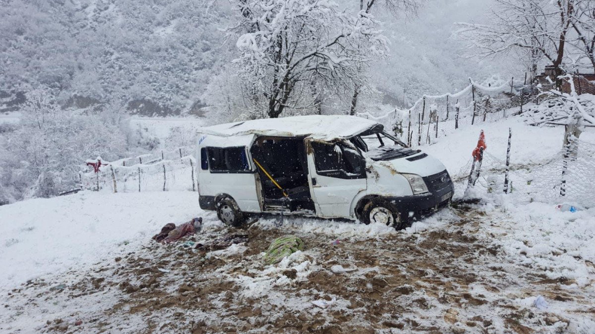 Samsun’un Yakakent ilçesi Kuzuören Mahallesi'ndeki Yakakent Çok Programlı Anadolu Lisesi öğrencilerini taşıyan servis minibüsü, sabah saatlerinde sürücüsünün karlı yolda direksiyon kontrolünü yitirmesi sonucu takla attı.