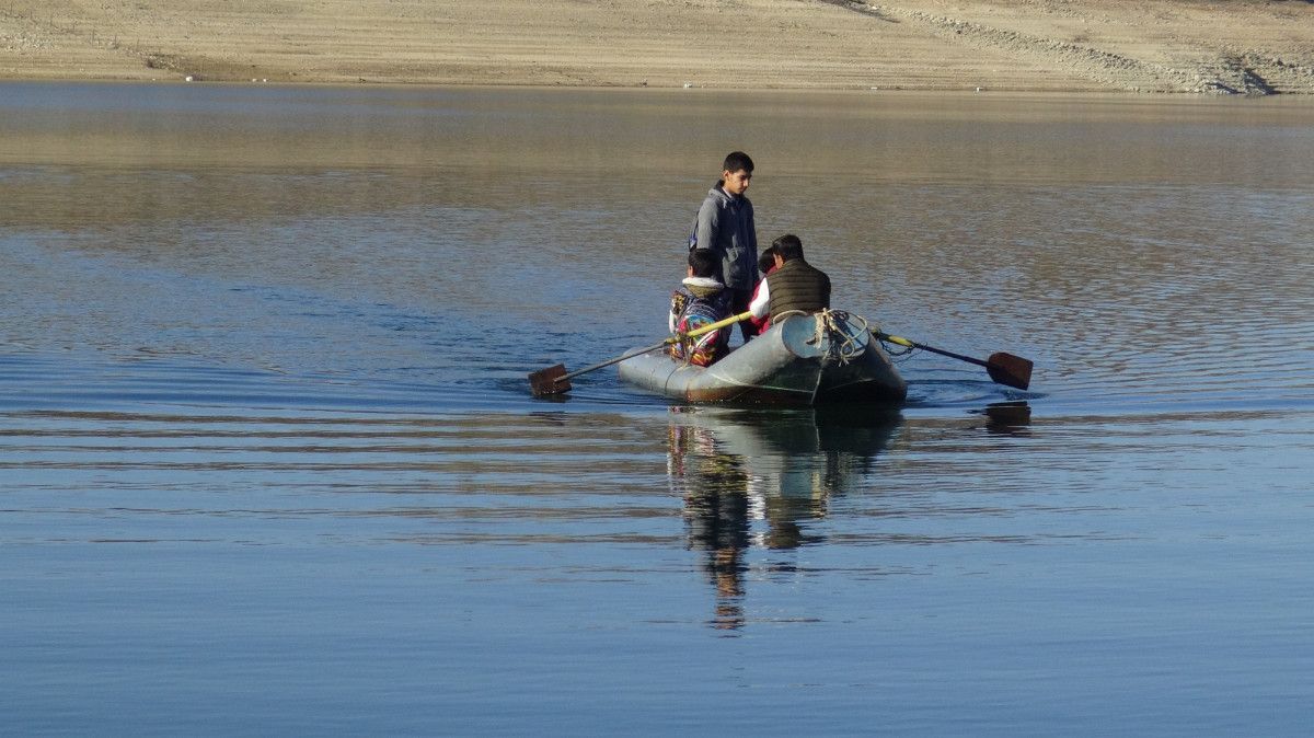 Daha sonra babaları ya da amcaları tarafından derinliği en az 60 metre olan baraj gölü üzerinden kayıkla karşıya geçirilerek servis aracına ulaşan öğrenciler, okullarına ulaşıyor.Öğrenciler, rüzgarlı havalarda ise okula gidemiyor.