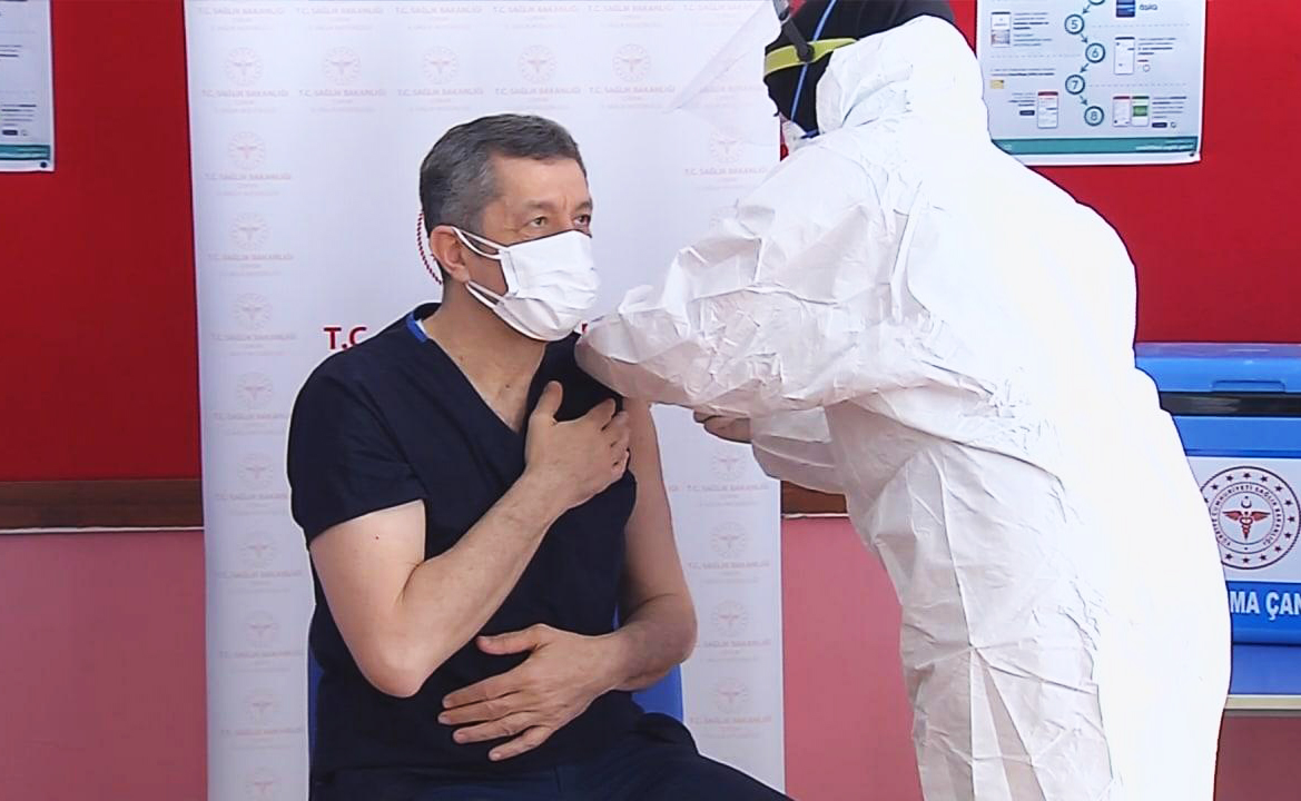 Bakan Ziya Selçuk da öğretmenlerle birlikte ilk aşısını yaptırdı. Yüz yüze eğitime giren öğretmenler aşılama listesinde öncelikli gruplar arasındaydı.