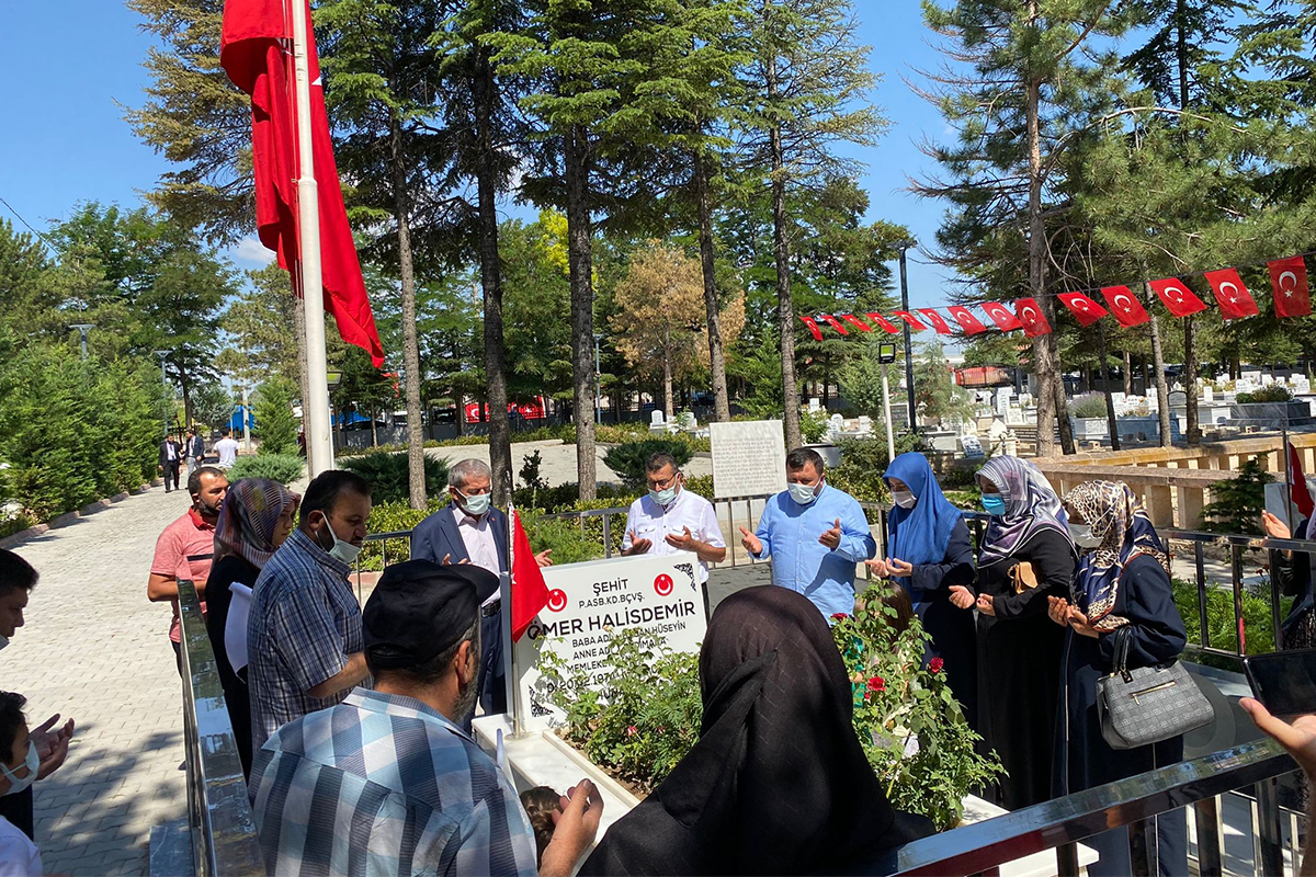 FETÖ'nün 15 Temmuz 2016'daki darbe girişiminin yıl dönümünde, Şehit Ömer Halisdemir'in Niğde'nin Bor ilçesine bağlı Çukurkuyu beldesindeki mezarı ziyaretçi akınına uğruyor. Türkiye'nin dört bir yanından gelen ziyaretçiler, şehit Halisdemir'in mezarı başında Kur-an'ı Kerim okuyup, dua ediyor.