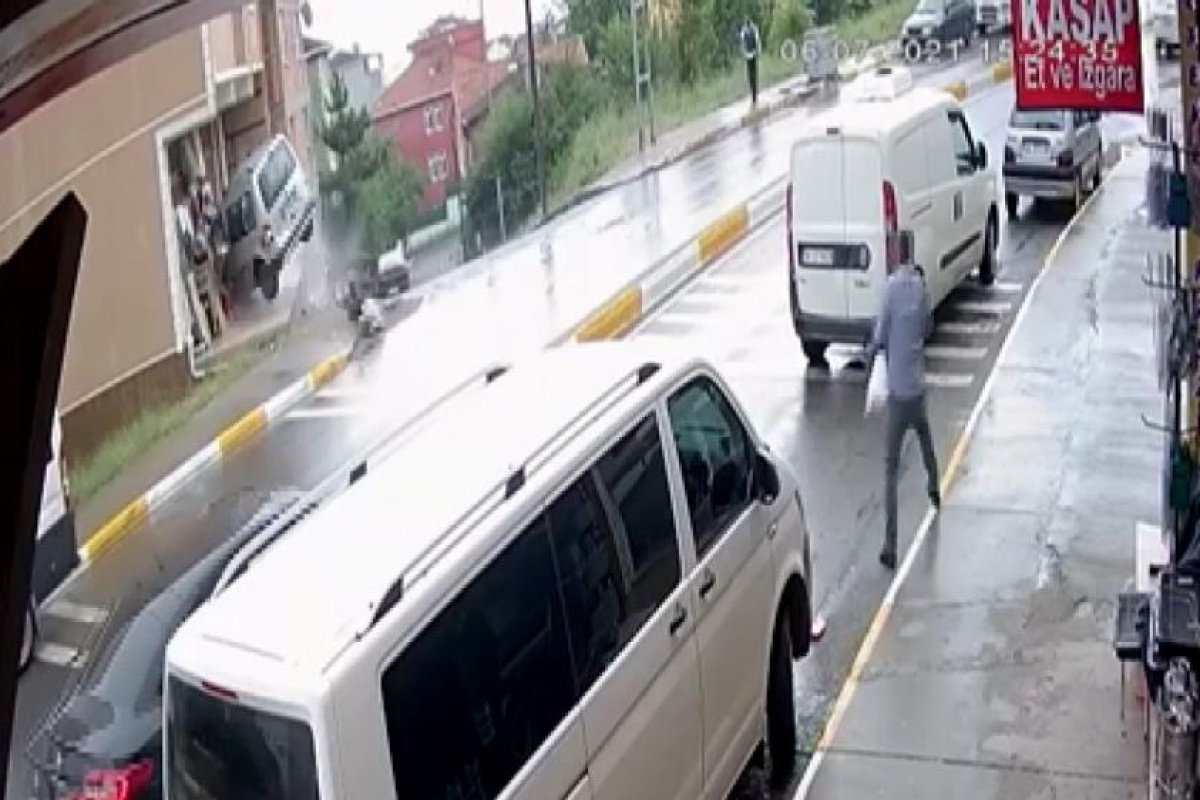 ÖNCE ADAMA SONRA DÜKKANA ÇARPTI