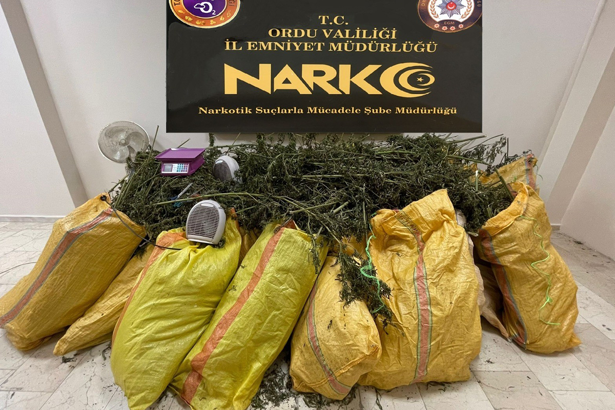 Ordu İl Emniyet Müdürlüğü'ne bağlı Narkotik Suçlarla Mücadele Müdürlüğü ekipleri, Fatsa ilçesinde uyuşturucu madde üretim ve satışının yapıldığına dair ihbar aldı. Bunun üzerine operasyon gerçekleştiren ekipler, yaptıkları arama çalışmaları neticesinde 150 kilo 500 gram esrar maddesi, 1 adet dijital terazi, 1 adet esrar kurutma amaçlı vantilatör, 1 adet esrar kurutma amaçlı fanlı ısıtıcı ele geçirdi.