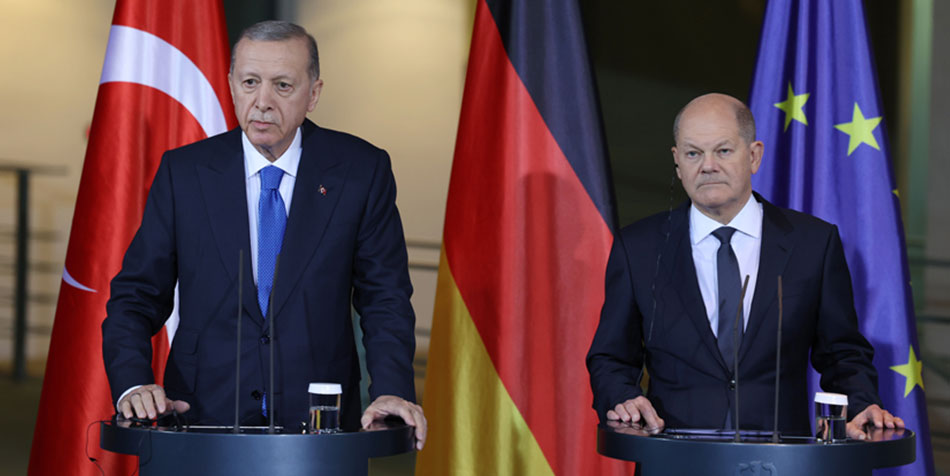Cumhurbaşkanı Erdoğan, Almanya Federal Cumhuriyeti Şansölyesi Scholz ile düzenlediği ortak basın toplantısında yaptığı konuşmada, “Türkiye olarak, amacımız; İsrail ve Filistinlilerin yan yana barış içinde yaşadığı, huzurun ve güvenin hâkim olduğu bir iklimin tesisidir. Orta Doğu’da adil ve kalıcı bir barışın temini için de herkesin elini taşın altına koyması gerektiğini düşünüyorum” dedi.