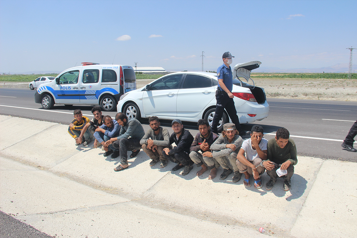 Polis ekipleri tarlaya kaçan sürücünün peşine düşerken, araçta bulunan 10 yabancı uyruklu şahsı etkisiz hale getirerek gözaltına aldı. Araçtan indirilen yabancı uyruklu şahısların Kilis'ten Konya'ya gelmek için araç sürücüsüne kişi başı 100 euro verdikleri öne sürüldü. Polis ekiplerinin araç üzerindeki incelemelerinin ardından göçmenler, işlemleri için İl Emniyet Müdürlüğü Göçmen Kaçakçılığıyla Mücadele Şubesine götürüldü. Otomobil sürücüsü kaçtığı mısır tarlasında polis ekipleri tarafından arandı. Tarladaki izler üzerine sürücünün peşine düşen polisler yaptığı aramalarda bir sonuca ulaşamadı. Araç polis ekipleri tarafından emniyet otoparkına çekilirken, kaçan şahsın yakalanması için çalışmalar sürüyor.