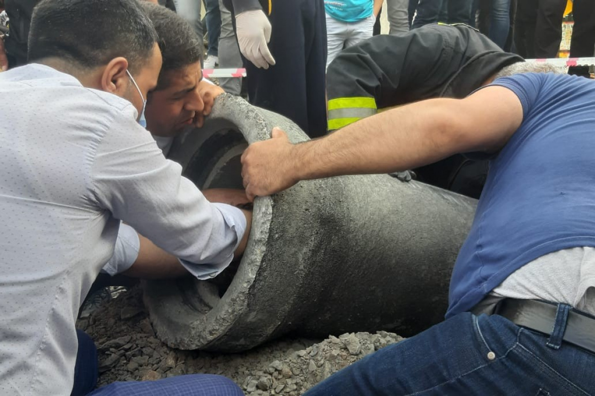Ekiplerin seferber olarak sıkıştığı borudan çıkan Akif'e ilk müdahale olay yerine sağlık ekiplerince yapıldı.