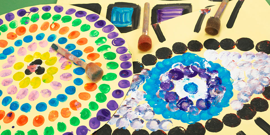 Programın çevrimiçi düzenlenen “Parmak ve Fırça ile Renkli Dokunuş” atölyesinde katılımcılar önce Hesaplar ve Tesadüfler sergisine yönelik 3D tura katılıyor. Ardından çeşitli boyalarla parmak, fırça ve sünger baskı tekniklerini bir arada kullanarak renk ve doku çalışması yapılan atölye, katılımcıların el-göz koordinasyonu ve yaratıcılıklarını geliştirmeyi amaçlıyor.