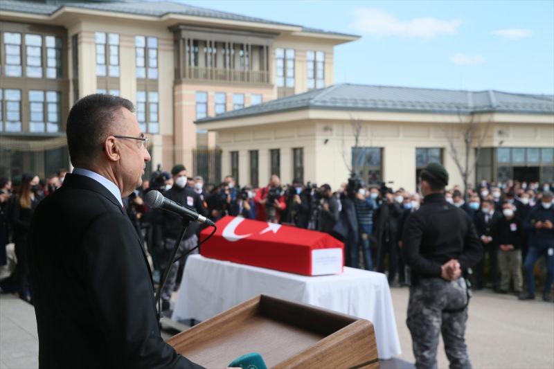 Cumhurbaşkanı Yardımcısı Oktay, törende yaptığı konuşmada, şehidin ailesine ve mesai arkadaşlarına başsağlığı dileyerek, "Hayrettin kardeşimizi, şehidimizi, emniyet müdürümüzü Allah'a uğurladığımız yer Afrika oldu. 30 yıldır özel harekat üniformasını şerefle taşıyan kardeşimiz bu vazifenin bilincinde her an şehit olma arzusunda. Bayrak, vatan, millet uğruna şehit olmayı arzulayan kardeşimizin cenazesindeyiz.
