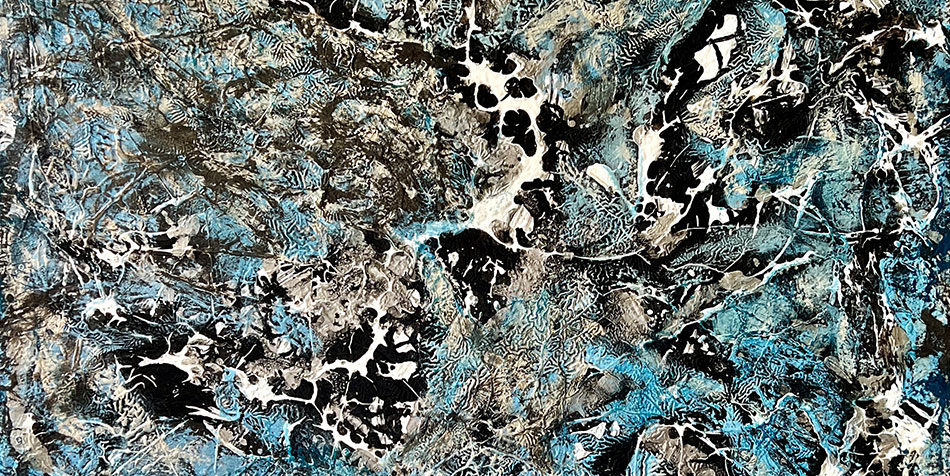 Sanatçının tabloları, keskin ve soyut formlar aracılığıyla renklerin ritmik diliyle hayali hareketleri betimliyor. Bu formlar, manevi, bilinçaltı ve zihinsel temaları ele alarak şiirsel bir öz taşıyor ve hem uyumlu hem de görkemli bir atmosfer yaratıyor.