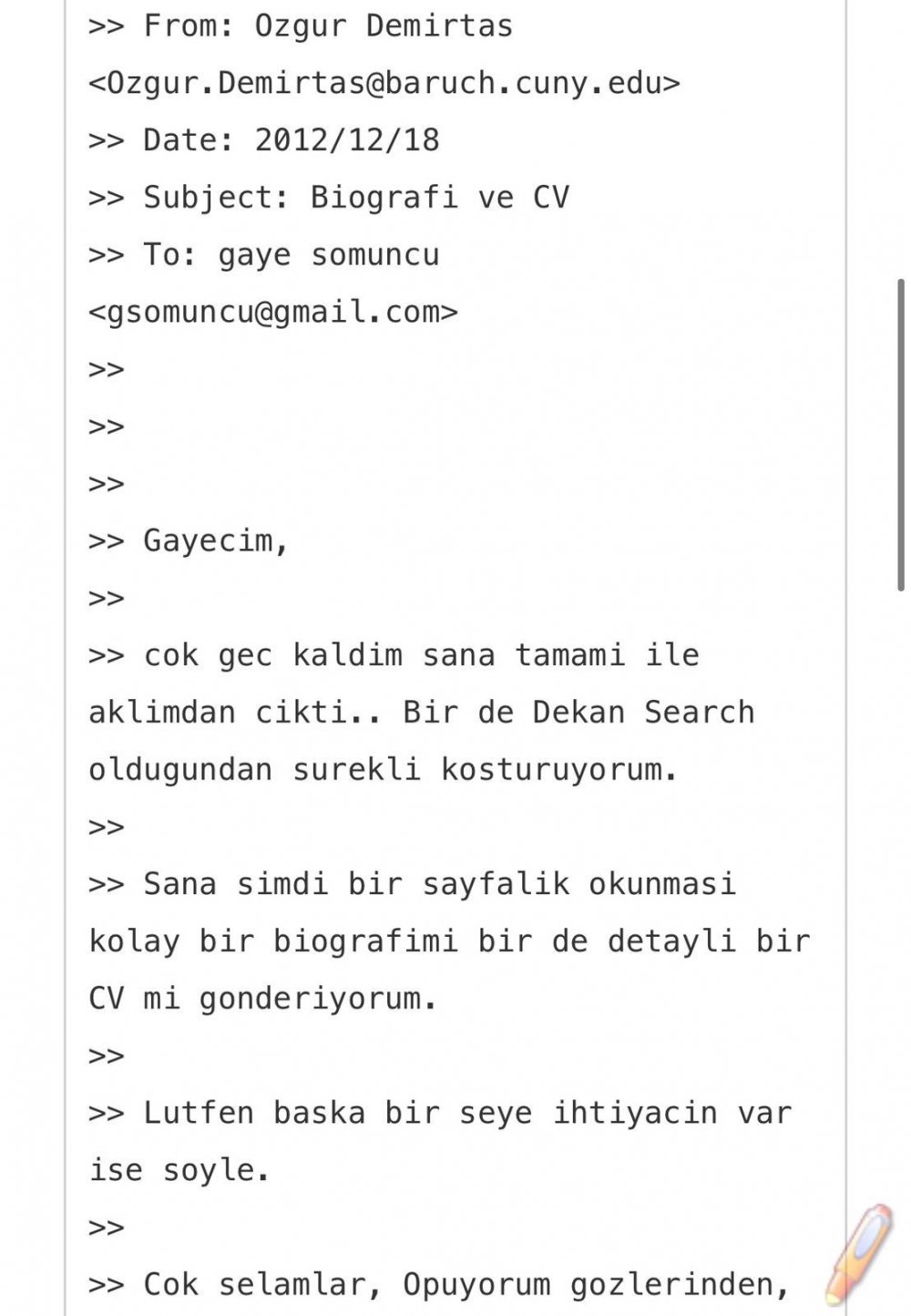 Somuncu'ya mail üzerinden CV gönderen Demirtaş, konuyla ilgili yaptığı açıklamada kendisinin sadece arkadaşına gönderdiğini, bakana kendisinin bilgisi dışında arkadaşının ilettiğini aktardı.