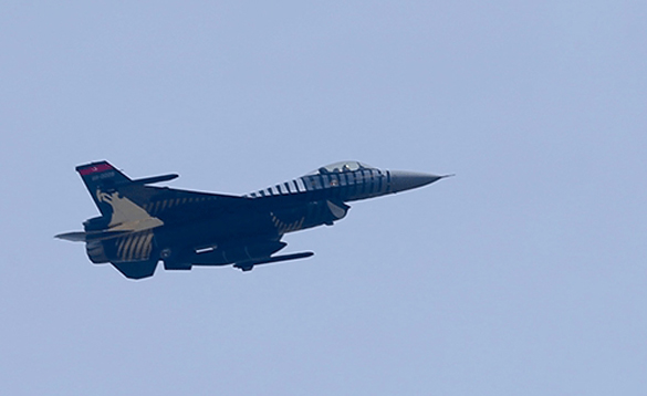 Helikopterler ve savaş uçakları da tören alanını uçarak geçti.
