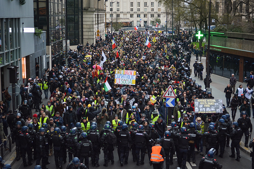 Başta akaryakıt zamları ve kötü ekonomik koşullara tepki olarak 17 Kasım 2018'de Fransa’da başlayan sarı yelekliler hareketi, Cumhurbaşkanı Emmanuel Macron'un özellikle sosyo-ekonomik politikalarına yönelik protestolarla devam ediyor.