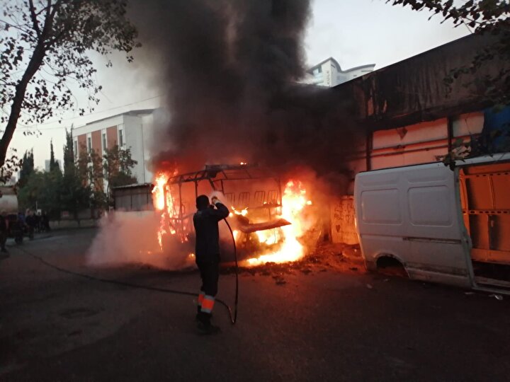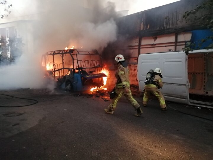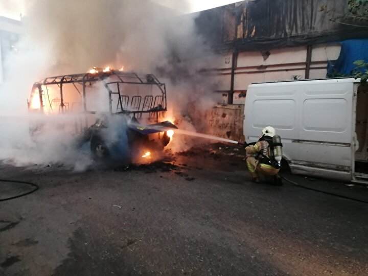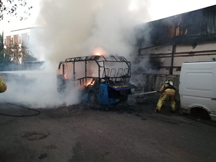 Olay sabah saat 07.30 sıralarında Esentepe Mahallesi Ersel Sokak içerisinde yaşandı. Bir oto tamirhanesinin yanında bulunan yolcu minibüsü alev aldı.