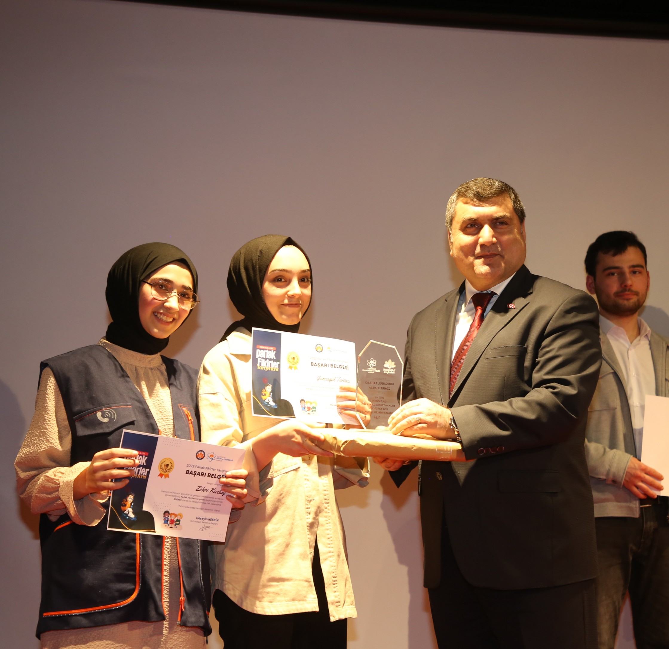 Konuşmaların ardından dereceye giren öğrencilere İlçe Milli Eğitim Müdürü Yaşar Çağlar ve Belediye Başkanı Hüseyin Keskin ödüllerini takdim etti. Ortaokul kategorisinde 1.lik ödülünü Yolcu Dostu Uçak projesiyle Berat Mete Başboğa, 2.lik ödülünü Yükselen Ayakkabı projesiyle Eylül Altuncu, 3. lük ödülünü Otomatik Yorgan projesiyle Mertcan Bulut kazanırken; Akıllı Sulama Sistemleri projesiyle Ebrar Ceviz özel ödülün sahibi oldu.