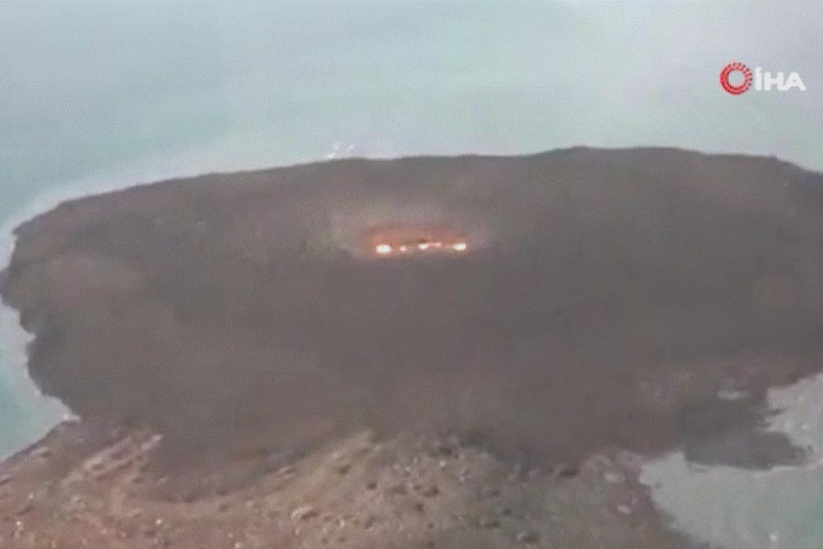 Metrelerce yükselen alevlerin Elet ile Neftçala arasında kıyıya yaklaşık 30 kilometre uzaklıktaki Taşlı adada doğal şekilde yanan çamur volkanının patlamasından kaynaklandığı belirtilen açıklamada, alevlerin sönmeye yakın olduğu aktarıldı.