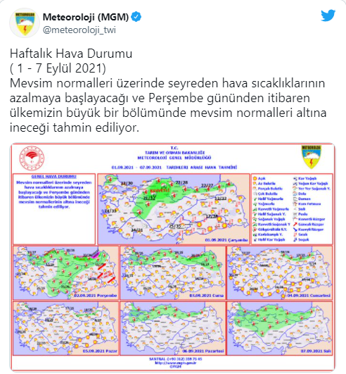 Meteoroloji Genel Müdürlüğü'nün (MGM) son değerlendirmelerine göre, yarından itibaren hava sıcaklıklarında düşüş öngörülüyor.
