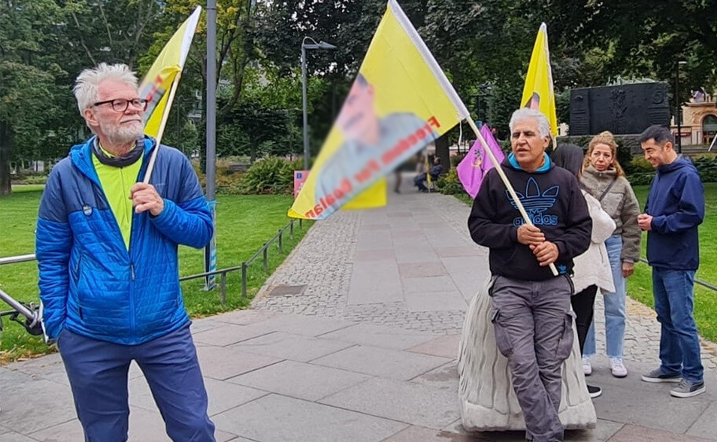 Göstericiler terör örgütü YPG/PKK'yı simgeleyen bez parçaları taşırken terör örgütü elebaşı Abdullah Öcalan'ın posterini açtı.
