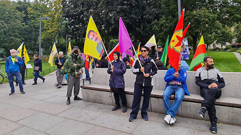 Norra Bantorget Meydanı'nda toplanan terör örgütü yandaşları, Türkiye'nin, Suriye'nin kuzeyine yapılacak olası askeri harekatının önlenmesi istendi.