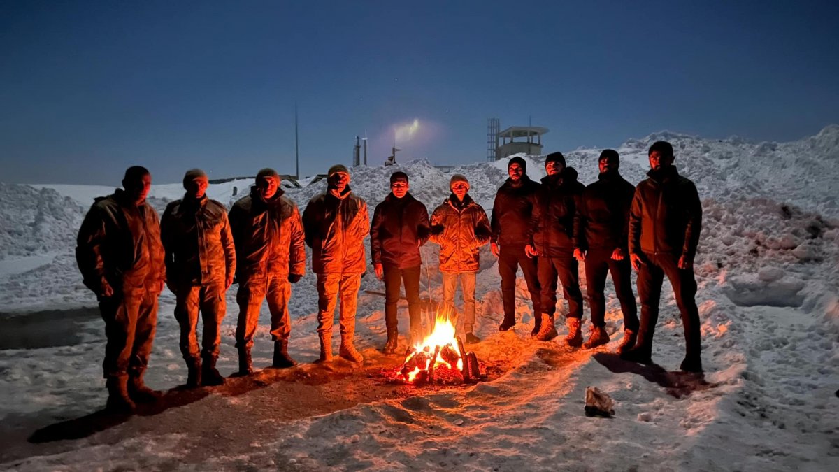 Kar kalınlığının yer yer 4 metreye kadar çıktığı bölgede kuş uçurtmayan Mehmetçiği ziyaret eden Kaymakam Hasan Uğuz, Cumhuriyet Savcısı Emre Karacan ile beraber mangal yaktı.