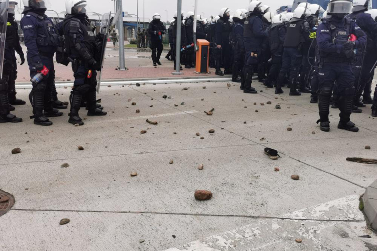 Sınır Koruma Basın Sözcüsü Anna Michalska düzenlediği basın toplantısında, Kuznica Sınır Kapısı'nda yaklaşık 2 bin göçmenin bulunduğunu, bunların içinde 100 kadar kişinin agresif davranarak sınırı gözeten asker, polis ve sınır koruma görevlilerine taşla saldırdığını söyledi. Sözcü Michalska göçmenlerin Polonyalı güvenlik güçlerine ses bombaları attığını, söz konusu ses bombalarının Belarus güvenlik güçleri tarafından göçmenlere temin edildiğini ileri sürdü. Polonya polisi ise göçmenlere tazyikli su ve göz yaşartıcı gazla müdahale etti.