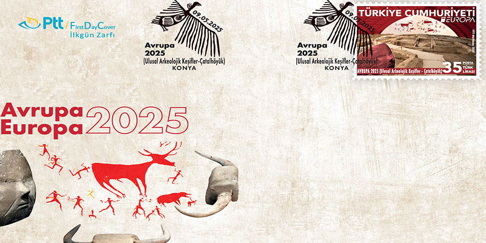 PTT AŞ, 9 Mayıs 2025 tarihinde " Avrupa 2025 (Ulusal Arkeolojik Keşifler-Çatalhöyük)" konulu 35 TL (36 x 52 mm boyutunda) bedelli anma pulu ile söz konusu pula ait 70 TL bedelli ilkgün zarfını abone sayısı kadar PTT iş yerlerinde ve PTT AŞ’ye ait www.filateli.gov.tr web adresinde satışa sundu.