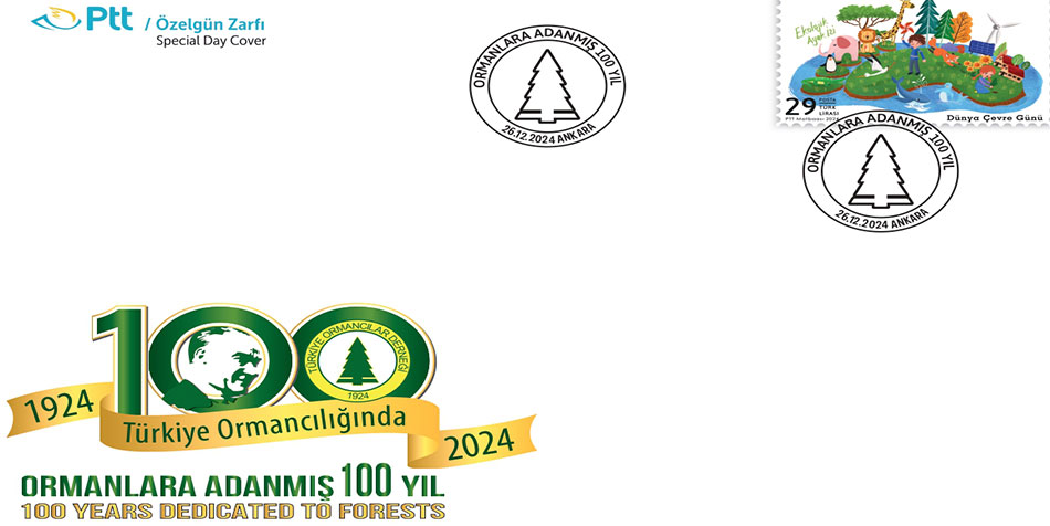 PTT AŞ, 26 Aralık 2024 tarihinde "Ormanlara Adanmış 100 Yıl" konulu 58 TL bedelli özelgün zarfını abone sayısı kadar PTT iş yerlerinde ve PTT AŞ’ye ait www.filateli.gov.tr web adresinde satışa sundu.