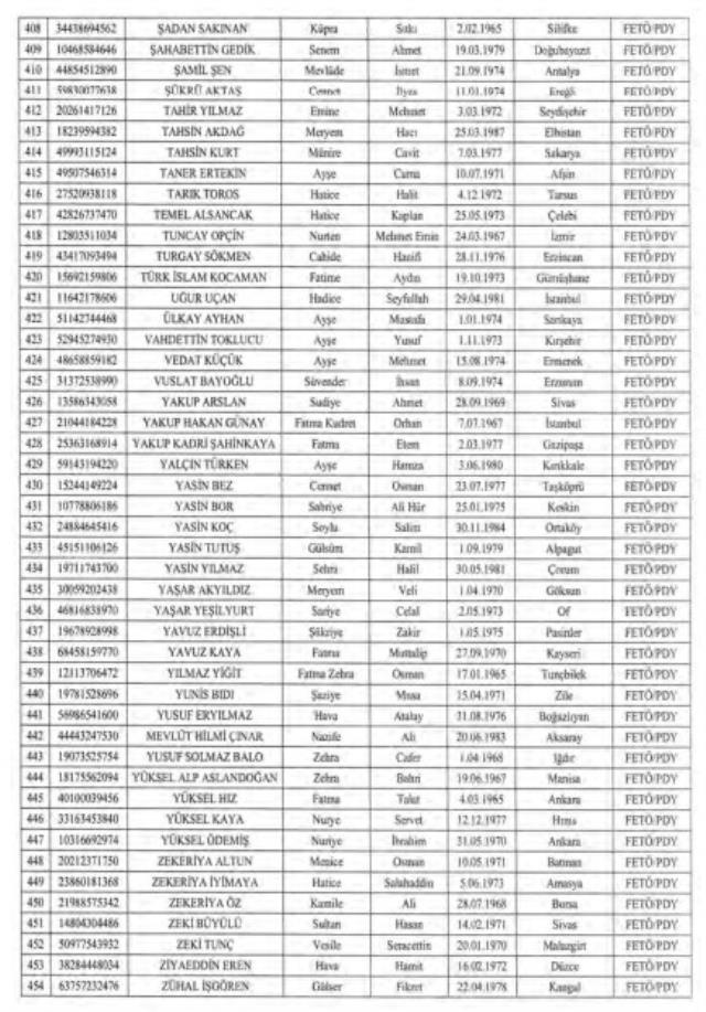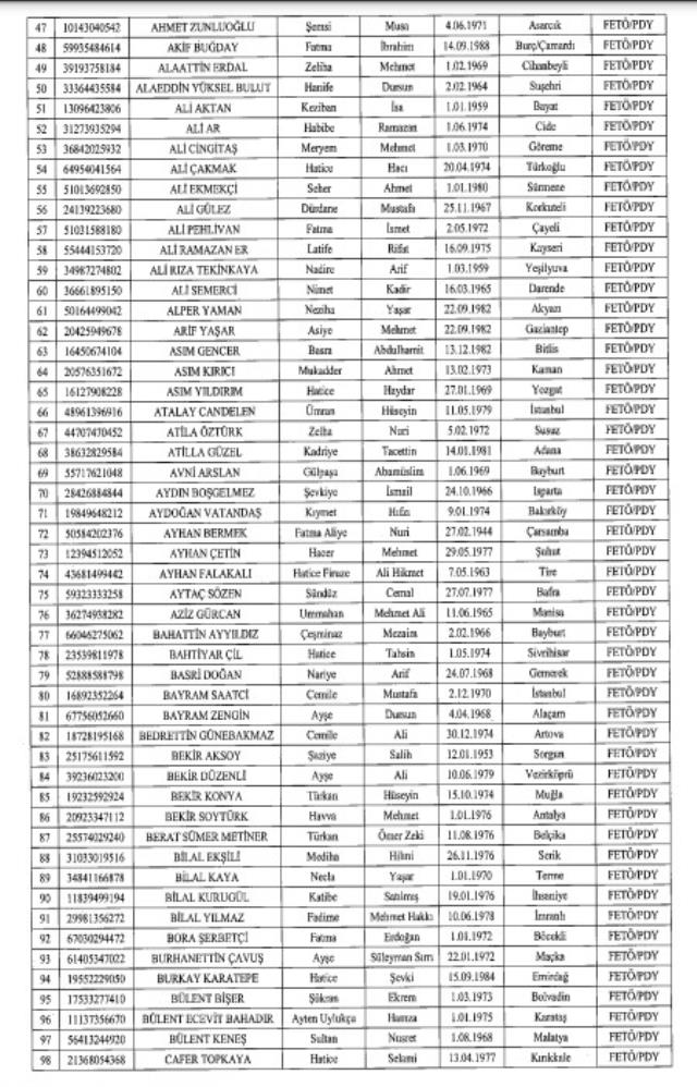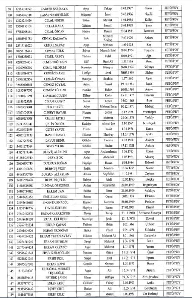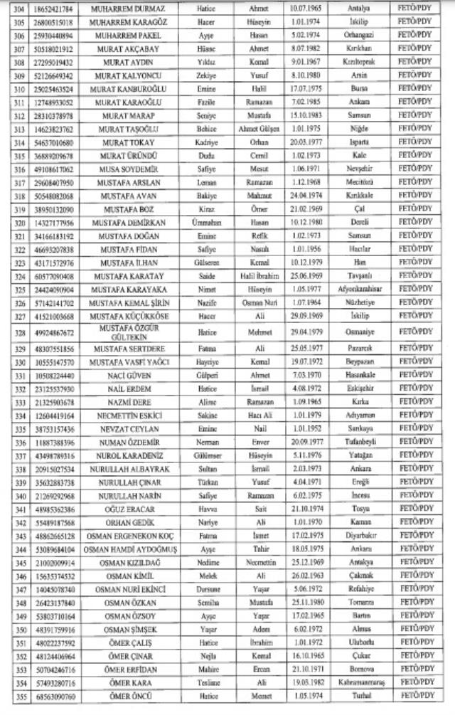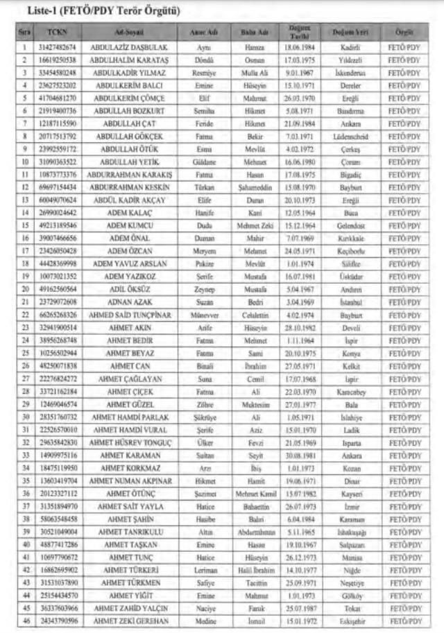 770 kişilik listede FETÖ terör örgütünün birçok yöneticisi var. Bu isimler arasından en önemlisi ise 15 Temmuz darbe girişimini Akıncı Üssünden yöneten örgütün TSK imamı firari Adil Öksüz oldu.