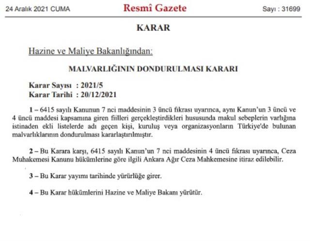 Ayrıca DHKP/C, MKP, MLKP, TKP/ML, DKP/BÖG ve DEV-KAR gibi sol terör örgütleri üyesi 89 kişinin mal varlıkları donduruldu.