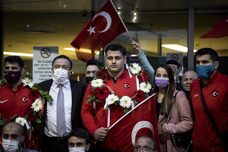 Saat 16.00’da Esenboğa Havalimanı’nda düzenlenen karşılama törenine ASKİ Spor Kulübü’nden yöneticiler, sporcular, Rıza Kayaalp’in ailesi ve çok sayıda vatandaş katıldı.