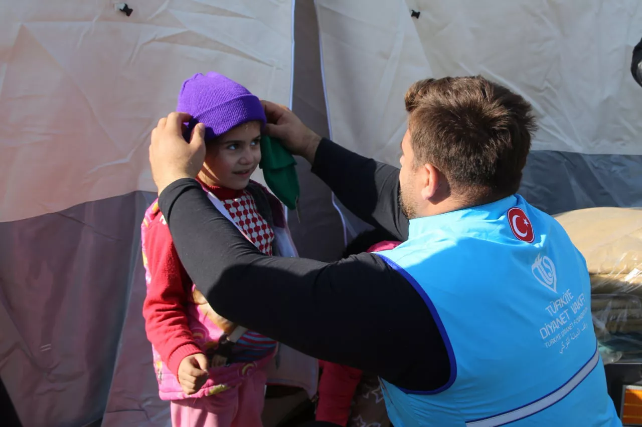 TDV'den yapılan açıklamaya göre, görevli ve gönüllülerle Kahramanmaraş merkezli ve 10 ili etkileyen depremlerde zarar gören vatandaşların yaraları sarılmaya çalışılıyor.