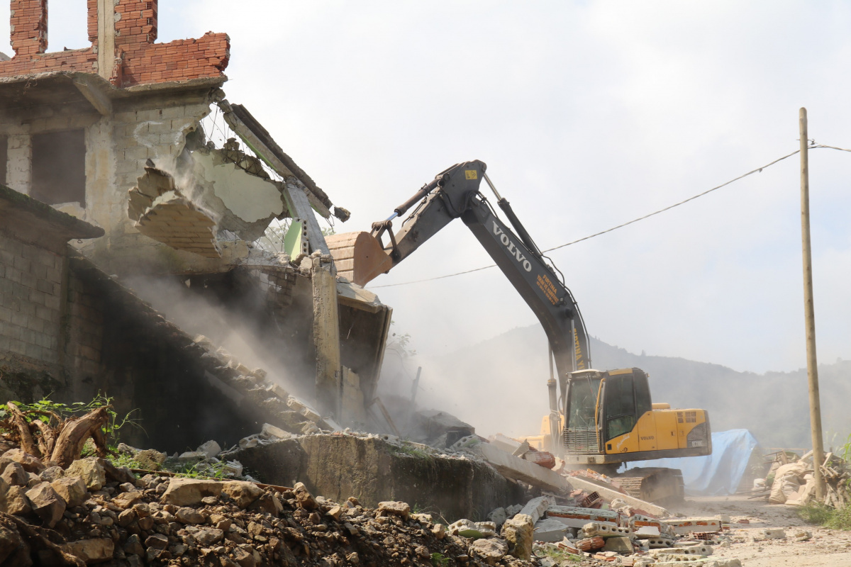 Sel ve heyelanlarda etkilenen evler arasında bulunan ve ilk etapta acil yıkılması planlanan 17 binanın yıkımına Rize merkeze bağlı Güzelyurt köyünde de 3 katlı Ali Furtuna'nın evi ile başlandı. Araç ulaşım sağlanamayan diğer evlerde ise işçiler tarafından el yordamıyla yıkım gerçekleştiriliyor.