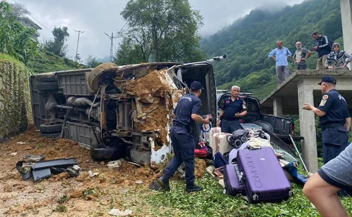 İHA'da yer alan haberdeki iddiaya göre; bölgeye gezme amaçlı geldiği düşünülen yabancı uyruklu turistleri taşıyan 61 S 3434 plakalı minibüs toprak duvara çarptıktan sonra 53 RT 658 plakalı çift kabin aracın üzerinde devrildi.
