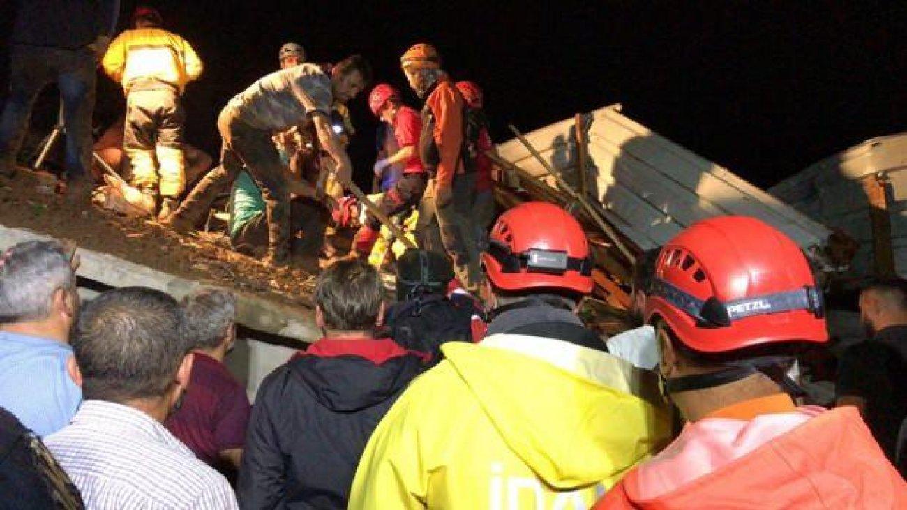 Rize’de sağanak sonrası sel ve heyelanlar meydana geldi. Merkeze bağlı Muradiye Beldesi’nde heyelan sonucu çöken binada enkaz altında kalan 3 kişiden birinin cansız bedenine ulaşıldı.