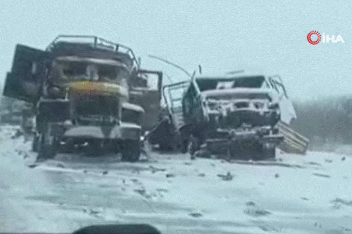 Rusya ile Ukrayna arasında 24 Şubat'ta başlayan ve 20 gündür devam eden savaşta askeri kayıplar artıyor. Ukrayna'da Harkov yolu üzerinde Rus ordusuna ait zırhlı araçlar ve askeri personelin nakli için kullanılan araçlar görüntülendi. Araçların bazılarının imha edildiği, bazılarının ise terk edildiği görüldü.