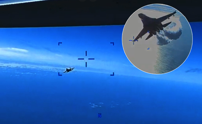 Havadaki kritik anlarda Rus Su-27'nin MQ-9 Reaper'ı önlemeye çalışırken üzerine yakıt boşalttığı ve çarpıp pervanesine zarar verdiği görüldü. Videonun paylaşıldığı açıklamada, "İki Rus Su-27 uçağı, 14 Mart'ta Karadeniz üzerinde uluslararası hava sahasında faaliyet gösteren ABD Hava Kuvvetleri'ne ait insansız hava aracı MQ-9'a profesyonellikten uzak bir önleme gerçekleştirdi. Rus Su-27 uçakları, MQ-9'un pervanesine çarptı. Bu da ABD kuvvetlerinin MQ-9'u uluslararası sularda düşürmesine neden oldu" ifadeleri kullanıldı.