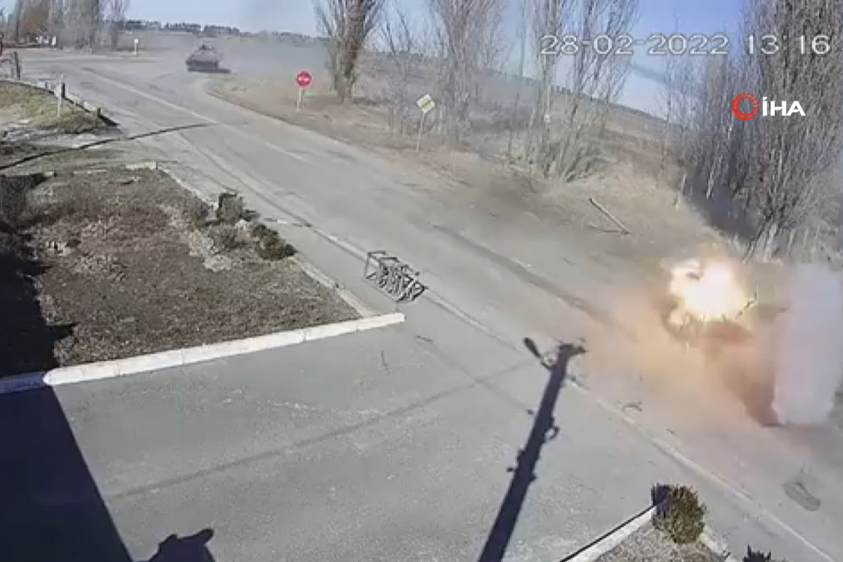Rusya'nın Ukrayna'daki saldırıları 14. gününde devam ediyor. Ukrayna'nın Makariv bölgesinde 28 Şubat'ta güvenlik kameralarına yansıyan görüntülerde Rus tankı, boş sokakta seyir halinde bulunan sivil bir aracı hedef alarak vurdu.
