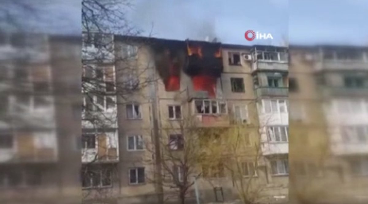 Kentteki sivil yerleşim yerlerinin bombalanmasının ardından ağır hasar alan çok katlı binalardaki birçok dairede yangın çıktı.