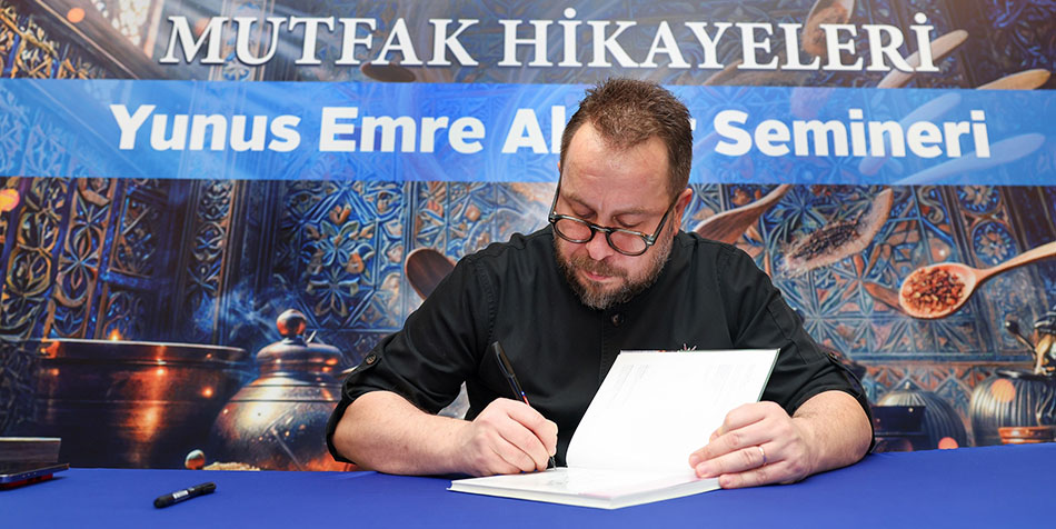 Gastronomi dalında Devlet Nişanı sahibi olan Yunus Emre Akkor seminerde; “Unutulmaması gereken bir gerçek var: Yemeklerin milliyeti yoktur, coğrafyası vardır. Fransız, İtalyan veya Osmanlı mutfağı diye bir ayrım yapamayız. Gerçek mutfak kültürü, tarihi ve coğrafyayı anlamaktan geçer. Yemek kültürü, coğrafyanın sunduklarıyla şekillenir. Anadolu’da aynı gün içinde dört mevsim yaşanır. Tarihi derinliği olan, verimli topraklara sahip bir coğrafyada mutfak kültürü de buna uygun gelişir. Tarih, kültür, iklim ve coğrafi koşullar bir araya geldiğinde benzersiz bir mutfak ortaya çıkar. Göbeklitepe'de 13 bin yıl önce tarım yapılırken, Almanya’ya tarımın ulaşması 5000 yıl aldı. Bu, bizim en büyük tarihi avantajlarımızdan biri. İşte bu nedenle mutfak kültürümüzü doğru anlayıp geliştirmeliyiz. Osmanlı padişahlarının bir sözü vardır: ‘Ne iş yaparsanız yapın, iki elinizi kullanarak yapın.’ Ben de mutfakta yolculuğuma bu anlayışla başladım. Geçmişten ilham alarak, geleceğe değer katmaya devam edeceğim” diye konuştu.
