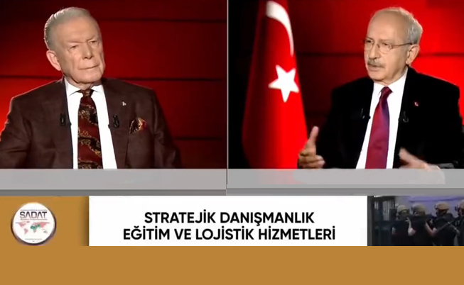 CHP lideri Kemal Kılıçdaroğlu, tv100'de dün akşam duayen gazeteci Uğur Dündar'ın sorularını yanıtladı. Yayın sırasında ekranda Sadat'ın "Stratejik danışmanlık, eğitim ve lojistik..." gibi çeşitli hizmetlerinin sıralandığı görüldü.