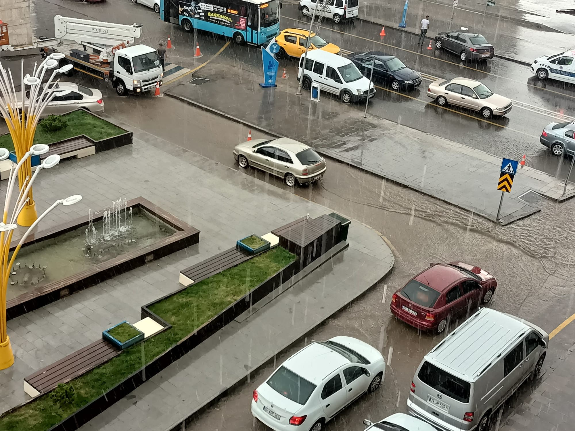 Kuvvetli yağış nedeniyle saniyeler içerisinde cadde ve sokaklar göle döndü. Cadde ve altgeçitlerin su dolmasıyla sürücüler trafikte ilerlemekte güçlük çekti.