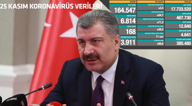 Koronavirüste nisan ayından itibaren düşmeye başlayan hasta sayıları kış aylarının gelmesiyle tekrardan yükselişe geçti. Sağlık Bakanı Fahrettin Koca da uyarılarıyla her gün koronavirüs hasta ve vefat sayısını son dakika olarak paylaşıyor. Vatandaşların ise merakla beklediği 25 Kasım corona virüs tablosu Sağlık Bakanı Koca tarafından açıklandı. İşte, Türkiye'de 25 Kasım koronavirüs hasta ve vefat tablosu...