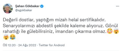 "Değerli dostlar, yaptığım mizah helal sertifikalıdır." diye başlayan Gökbakar, dini değerleri diline doladığı mesajında şunları söyledi: