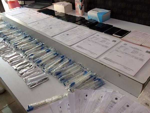 Adreste yapılan aramalarda, çok sayıda sahte test raporu ile test kiti ele geçirildi.