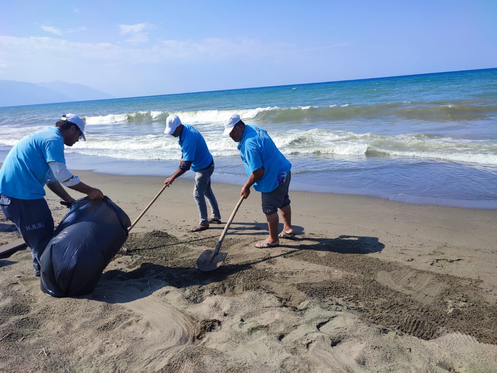 14 kilometrelik Samandağ kıyı şeridi boyunca kendini gösteren petrol atıklarının temizlenmesi için çalışmalar devam ediyor.