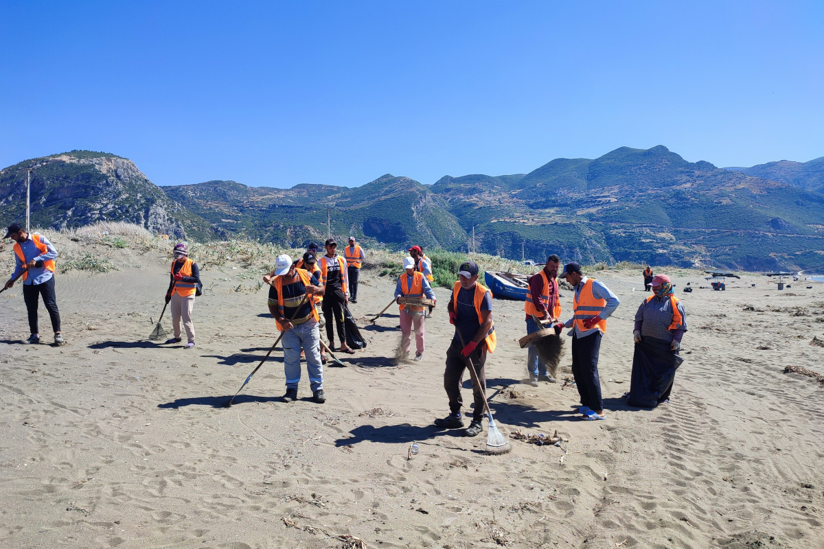 Hatay'ın Samandağ ilçesi sahillerinde Çevre ve Şehircilik İl Müdürlüğü ekipleri, 2 Eylül'de başlayan temizlik çalışmalarını sürdürüyor.
