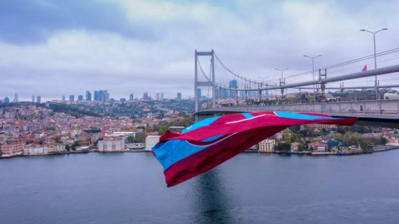 Spor Toto Süper Lig'in 35’inci haftasında dün Fraport TAV Antalyaspor'la 2-2 berabere kalarak bitime 3 hafta kala şampiyonluğunu ilan eden Trabzonspor’da kutlamalar gece boyunca devam etti. Gece saatlerinde kulübün renkleriyle ışıklandırılan İstanbul Boğazı’nı bugün de bordo-mavi renkli bayrak süsledi.